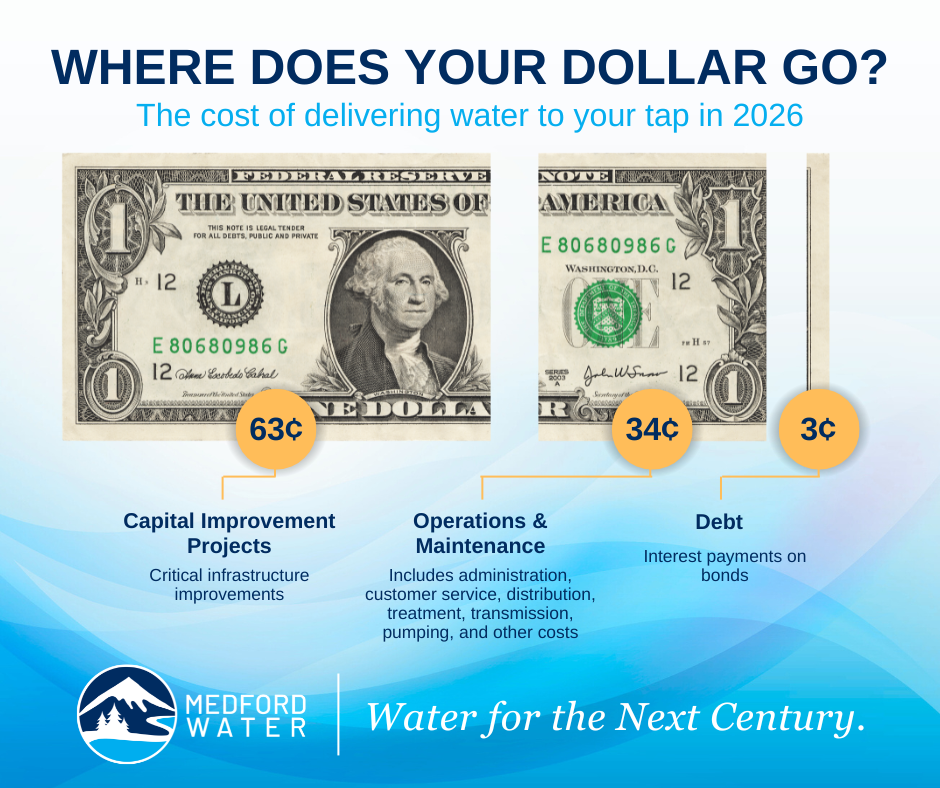 Please visit medfordwater.org for FAQs and to learn more about what rates pay for (and what they don’t). You can also give us a call at 541-774-2430.