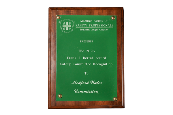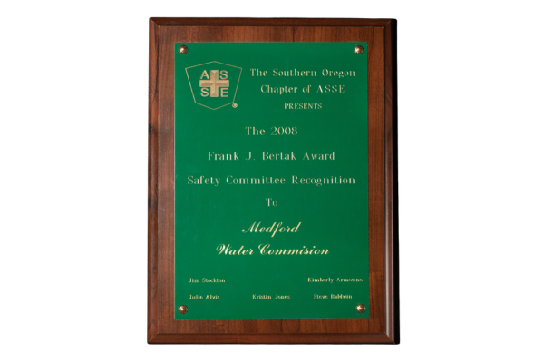 Awarded by the Southern Oregon Subsection of the American Water Works Association’s (AWWA) Pacific Northwest Section. Members of the subsection represent utilities in Coos, Curry, Douglas, Jackson, Josephine, Klamath, and Lake counties.