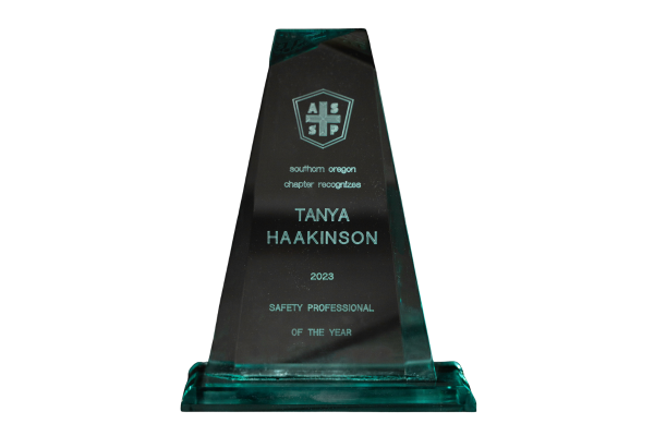 Awarded to HR Manager Tanya Haakinson by the American Society of Safety Professionals (ASSP) to a member who demonstrates outstanding achievement in the occupational safety and health field while also advancing the OSH profession overall.