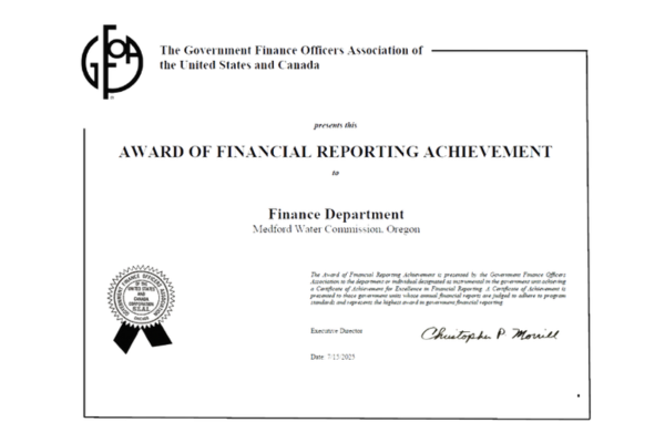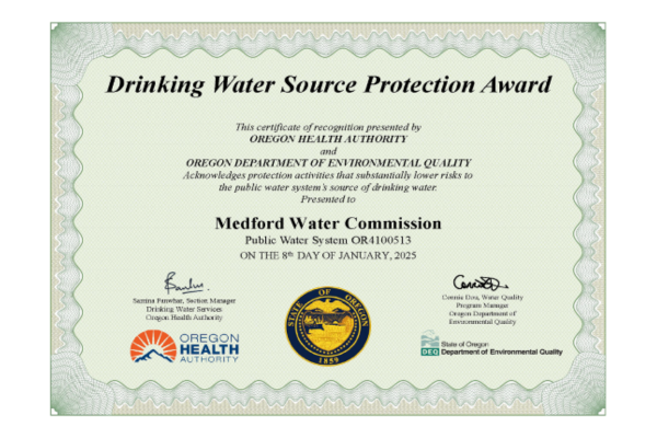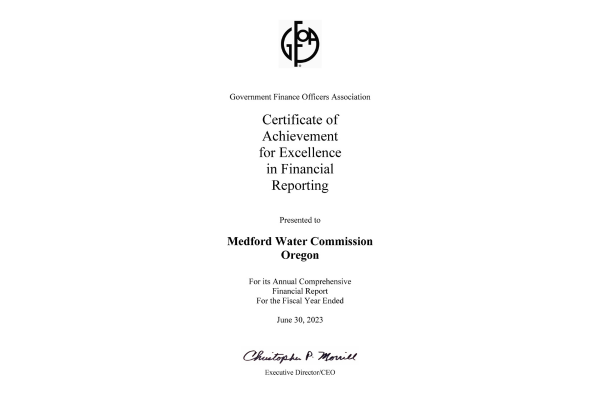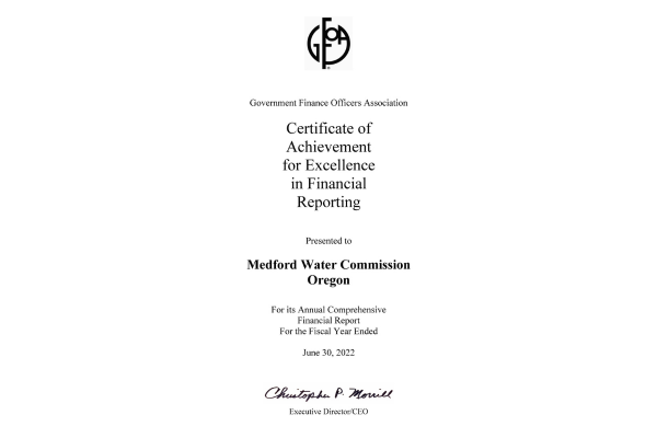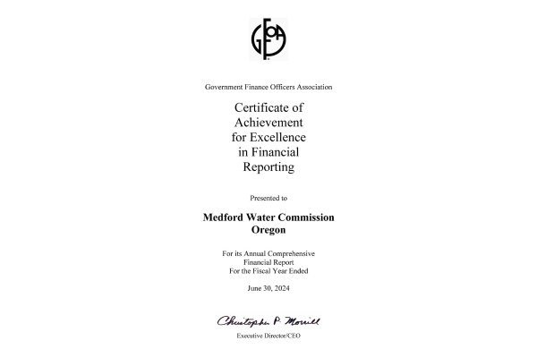 We are proud of our accomplishments at Medford Water, and strive for excellence in everything we do.